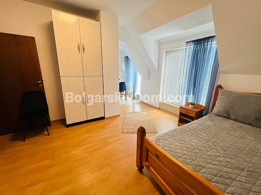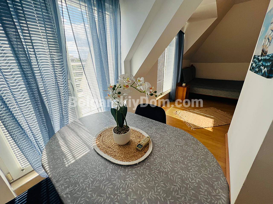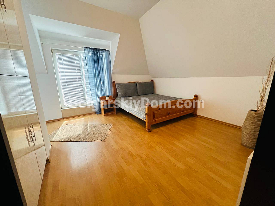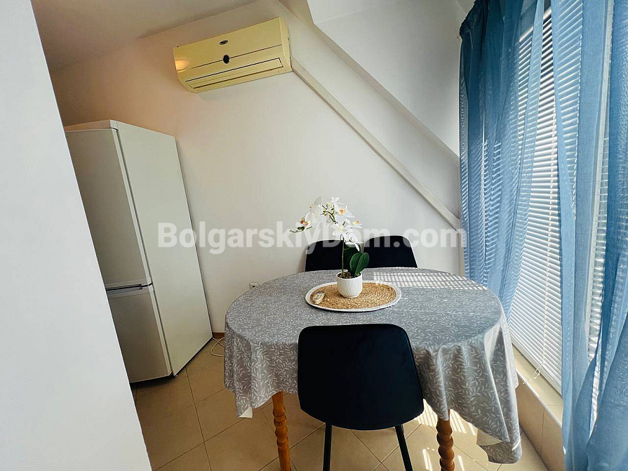 Трохи більше 10 хвилин до моря! Новинка в Laguna 1 – простора двокімнатна квартира площею 63 кв.м за чудовою ціною в центральній частині Сонячного Берега. Житло розташоване на шостому, останньому поверсі, завдяки чому має мансардну особливість – похилі стелі, які додають інтер’єру індивідуальності та затишку. Об’єкт повністю укомплектований меблями, пральною машиною та кондиціонером. Невелика кухня компактно розміщена в ніші, санвузол доволі просторий, є тераса. Ви можете одразу заселитися або почати здавати апартамент туристам без додаткових вкладень.
