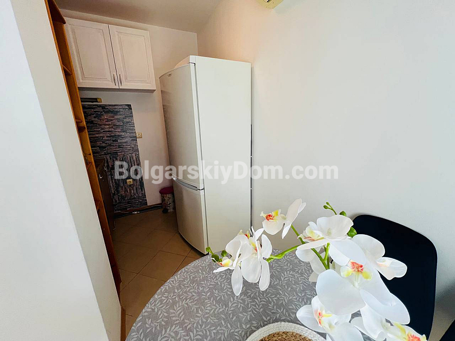 Комплекс розташований за 400 метрів від морського узбережжя та працює цілий рік. Головна перевага цієї пропозиції – надзвичайно низька такса підтримки, лише 4 євро за кв.м на рік. На закритій території є великий басейн, фітнес-зал, ресторан і дитячий майданчик. Будівля має Акт 16, електроенергія оплачується за побутовими тарифами. Поруч супермаркети та зупинки транспорту, тому локація зручна для постійного проживання. Фахівці компанії Bolgarskiy Dom допоможуть швидко оформити угоду та перевірять усі документи. Пишіть нам – ми на зв’язку!