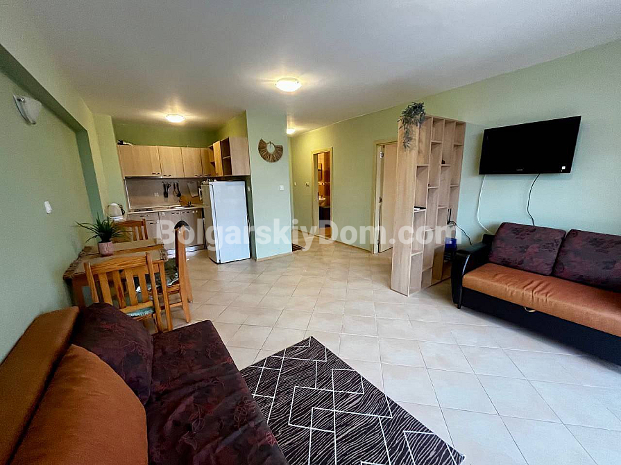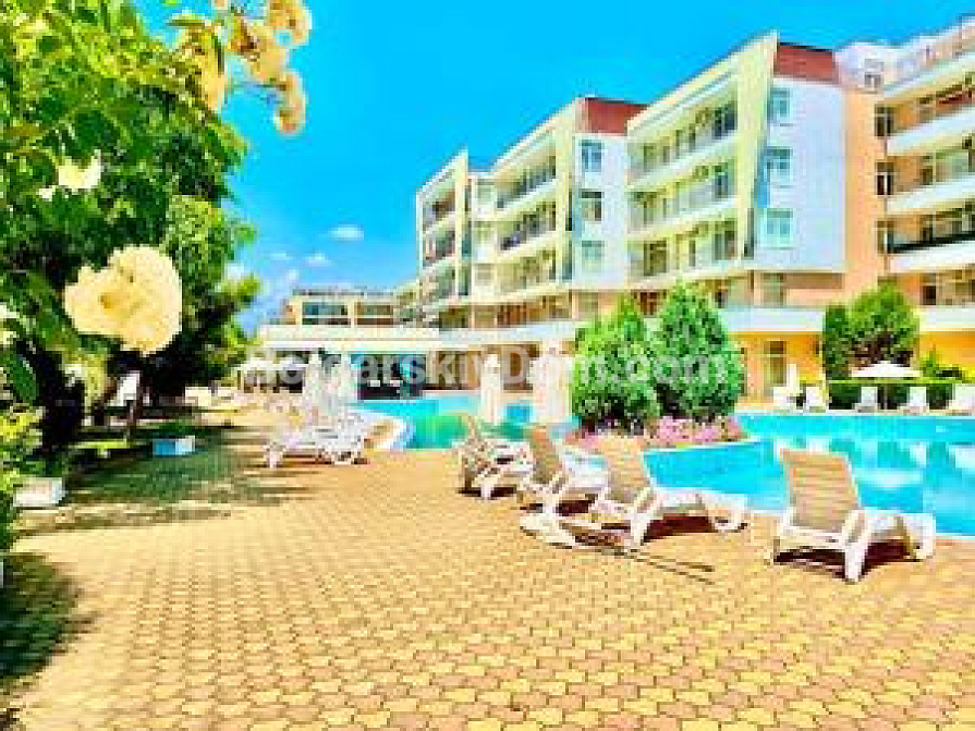 Гранд Камелія – доглянутий комплекс з розвиненою інфраструктурою: два великі басейни та два дитячі, ресторан, кафе, спортивні майданчики, дитячий ігровий майданчик, перукарня, цілодобова охорона з відеоспостереженням. Квартира знаходиться в тихій частині Сонячного Берега – туристичного шуму немає, до моря лише 600 метрів пішки. Поруч супермаркети, аптека та зупинки громадського транспорту. Чудовий варіант як для сезонного відпочинку, так і для постійного проживання або здачі в оренду з хорошим доходом.