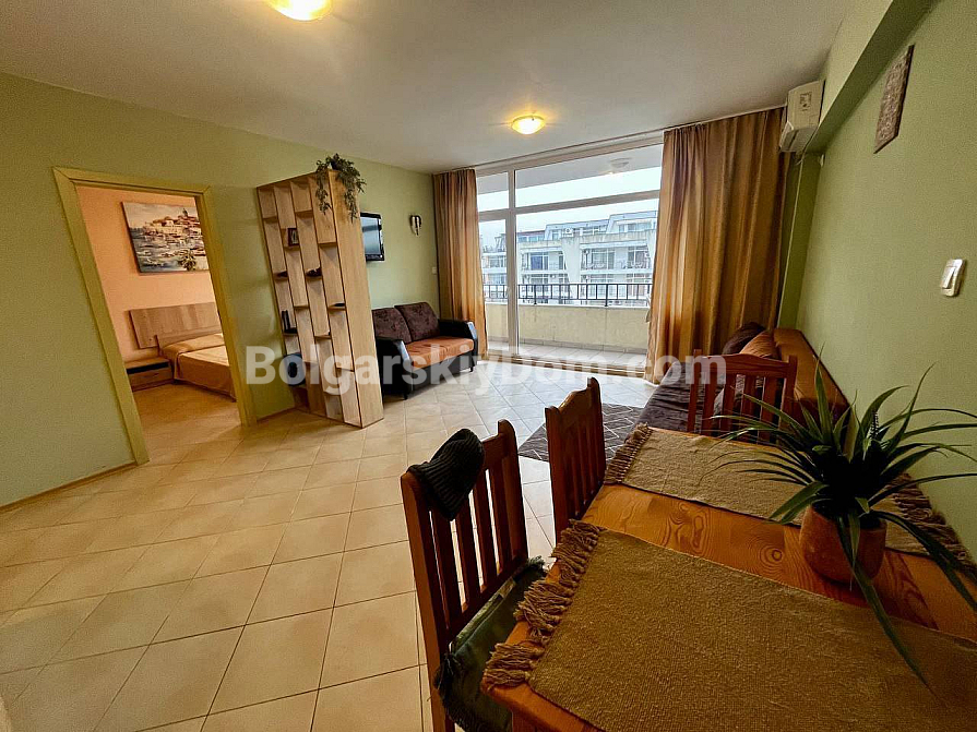 Агентство нерухомості «Болгарський Дім» додало до своєї бази двокімнатну квартиру в комплексі Гранд Камелія на Сонячному Березі – 75 кв.м., дві спальні, велика тераса з видом на басейн та територію комплексу. Квартира повністю мебльована та укомплектована: вітальня з кухонною зоною, спальні з ліжками, шафами та текстилем, санвузол з сучасною сантехнікою, кондиціонер. Тераса ідеально підходить для ранкової кави або вечірок з друзями – достатньо місця і для лежаків, і для обіднього столу. Такса обслуговування – 420 євро на рік. Напишіть нам вже зараз, організуємо показ!