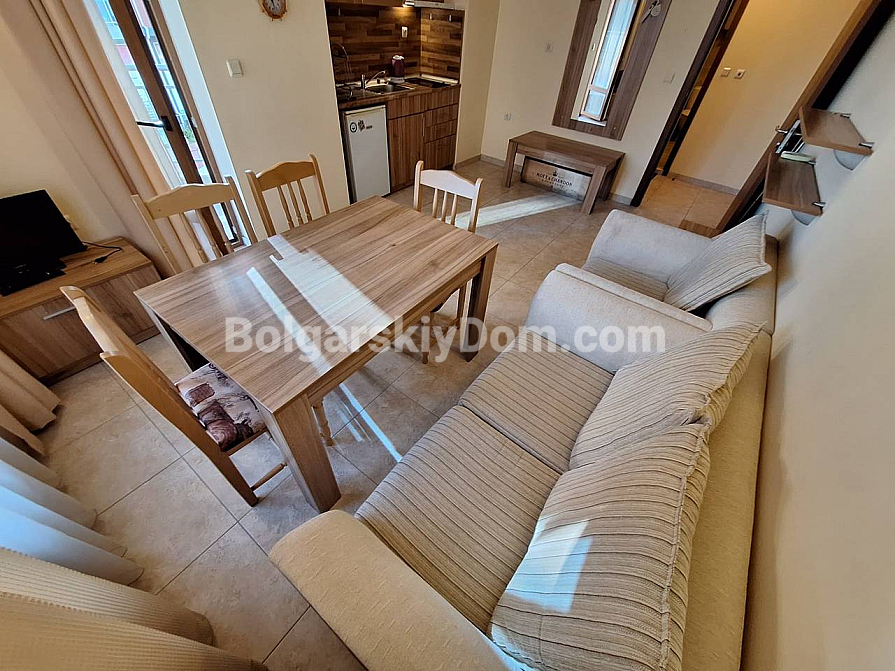 Затишний апартамент усього за 300 метрів від знаменитого пляжу Cacao Beach — під ключ і в одному з найспокійніших куточків Сонячного Берега! Пропонуємо чудовий об’єкт від Bolgarskiy Dom у комплексі Sea Regal. Апартамент площею 53 кв.м розташований на третьому поверсі та поєднує продумане планування, сучасний ремонт і повну готовність до негайного заселення. З балкона відкривається вид на доглянуту зелену територію комплексу — ідеальне місце для ранкової кави в тиші, подалі від шуму великих курортів. Планування: ізольована спальня та світла вітальня з кухонною зоною. Квартира повністю укомплектована меблями й технікою — приїжджайте та живіть.
