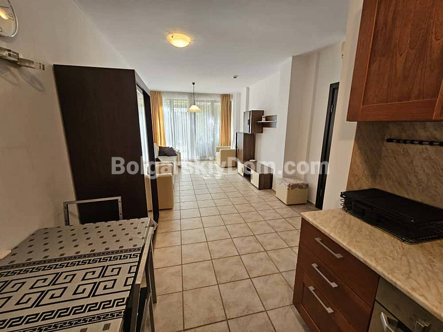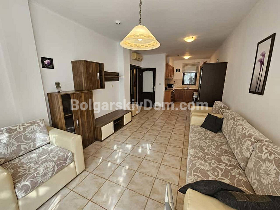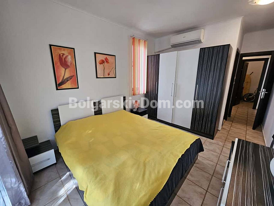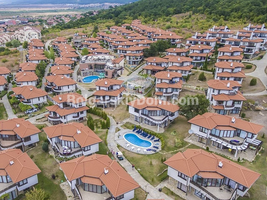 Bay View Villas розташований між курортом Сонячний Берег та селом Кошариця на висоті 100 метрів, звідки відкривається чудовий вид на море. Комплекс повністю огороджений і охороняється, на території працюють два басейни, СПА-центр, ресторан, дитячий майданчик, міні-гольф і паркінг. Інфраструктура світового рівня при одночасному відчутті спокою та усамітнення. Від квартири 2 км до пляжу, 3 км до Сонячного Берега, 8 км до Несебра та 5 км до Святого Власа. Щорічна плата за обслуговування — 12 євро за кв.м. Акт 16 отримано. Квартира готова до заселення без додаткових вкладень.