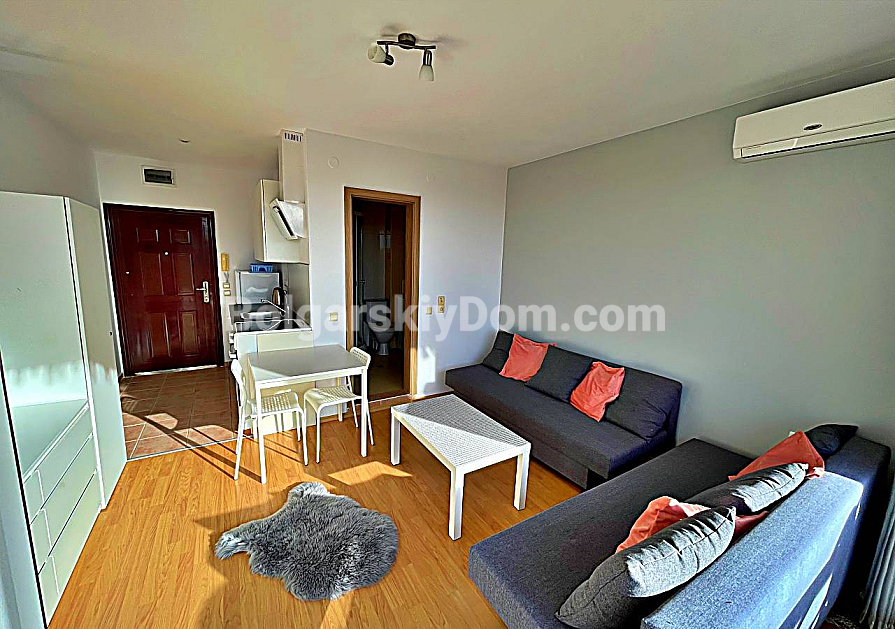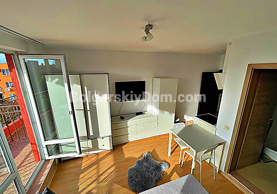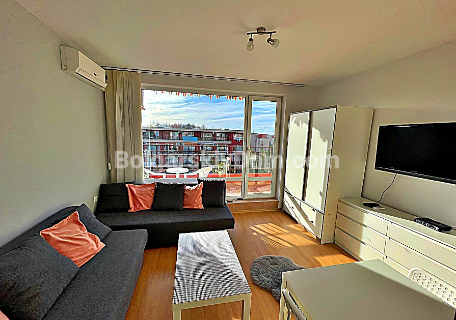 Нова пропозиція в каталозі! АН Болгарський Дім представляє студію площею 36 кв.м у сімейному комплексі Orchid Fort Garden, Сонячний Берег. Четвертий поверх, вид на центральний басейн. Планування типове для студії: передпокій, вітальня з кухонною зоною, ванна кімната з душовою кабіною, тераса. Квартира повністю мебльована та оснащена технікою, готова до заселення в день покупки. Четвертий поверх оптимальний для інвестора — ви не чуєте шуму вуличного руху. Терасу можна облаштувати як зону відпочинку.