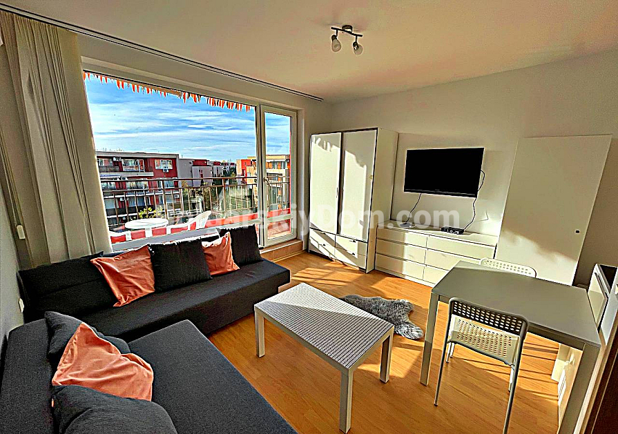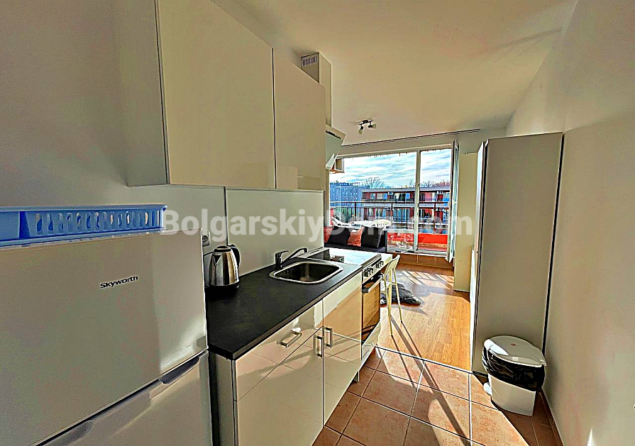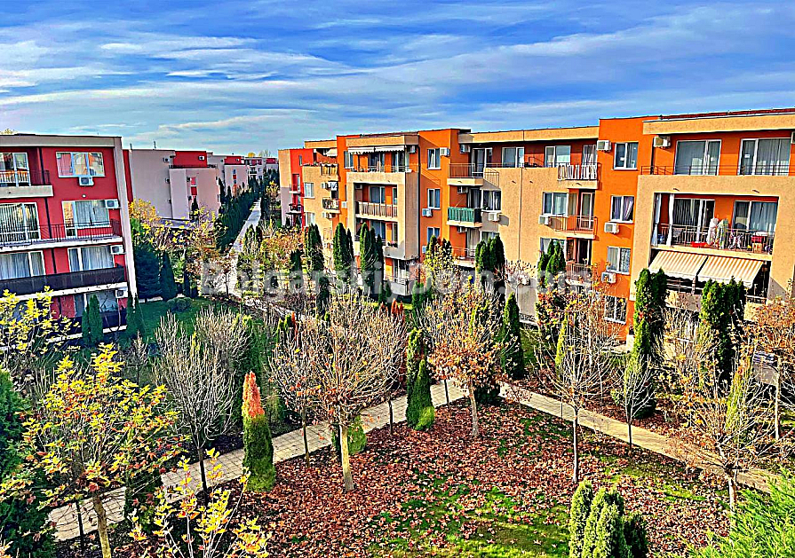 Orchid Fort Garden — це закритий комплекс з охороною та повною інфраструктурою: шість басейнів, поле для гольфу, фітнес, дитячі майданчики, ресторан, магазини та медичний кабінет. Комплекс розташований у західній частині Сонячного Берега — це традиційно район для постійного проживання, без туристичної метушні. Море за 900 метрів, до аквапарку кілька хвилин пішки, поруч супермаркет ММ. Студія ідеально підходить для короткострокової та середньострокової оренди. Акт 16. Обслуговування — 13,5 євро за кв.м на рік.