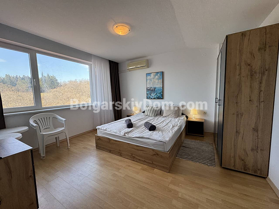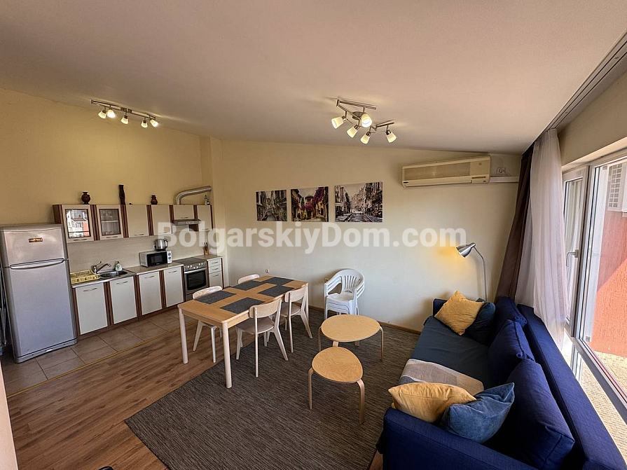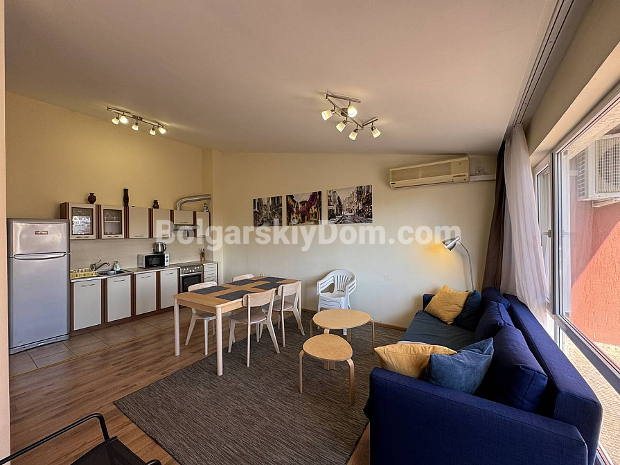 Green Fort розташований у північній частині Сонячного Берега на межі зі Святим Власом — це означає спокійний, зелений район подалі від туристичного центру, але всього за п’ять хвилин від пляжів. Комплекс закритого типу з охороною, кілька відкритих басейнів, дитячі майданчики, ресторани, супермаркет, медпункт, спортивні майданчики для футболу та волейболу, тенісні корти. Паркінг на території. Акт 16, можливе цілорічне проживання. Море за 200 метрів. Обслуговування — 14,50 євро за кв.м на рік. Це варіант як для постійного проживання, так і для інвестування в оренду.