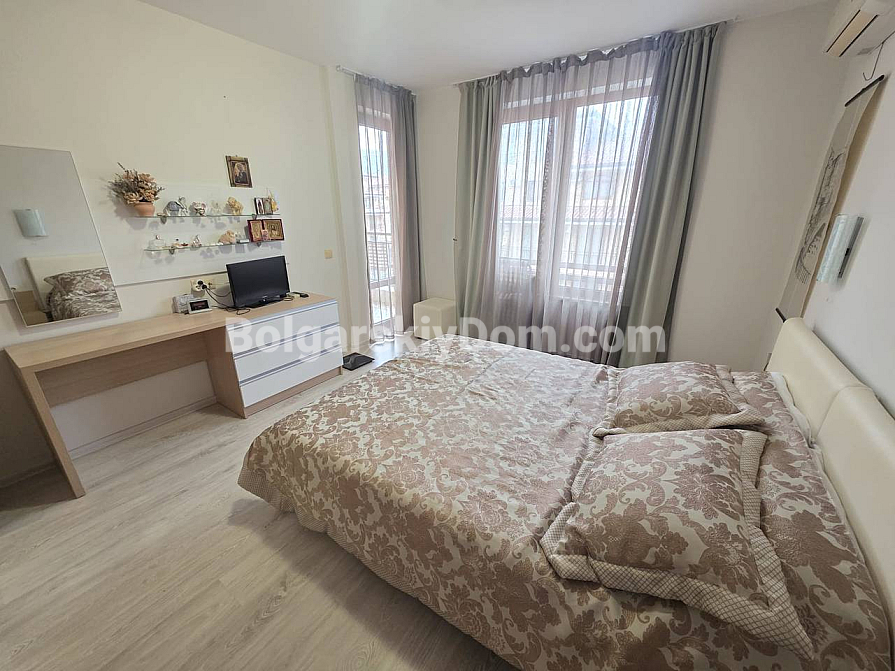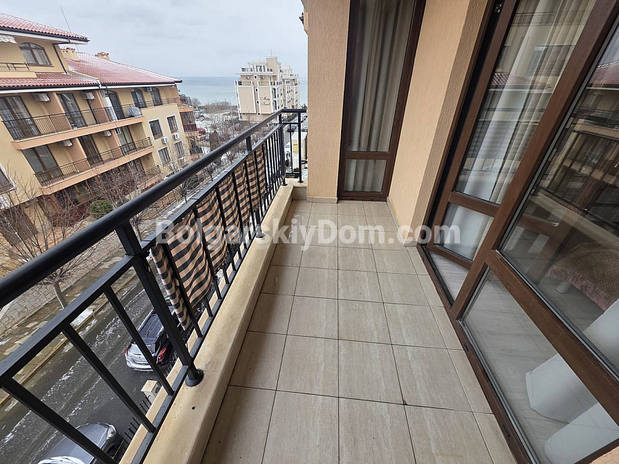 Нова пропозиція від компанії Болгарський Дім! Простора трикімнатна квартира з приголомшливим видом на море в одному з найпрестижніших комплексів Святого Власа — Star Dreams. Апартамент розташований на 4-му поверсі п’ятиповерхового будинку та має дві великі тераси: одна з прямим панорамним видом на море, інша — з видом на басейн і зелену територію комплексу. Загальна площа — 99 кв.м із ергономічним та добре продуманим плануванням: світла вітальня з кухонною зоною, дві окремі спальні та дві сучасні ванні кімнати. Квартира після якісного ремонту, повністю мебльована та оснащена всією необхідною технікою, тому житло готове до заселення у будь-який момент.