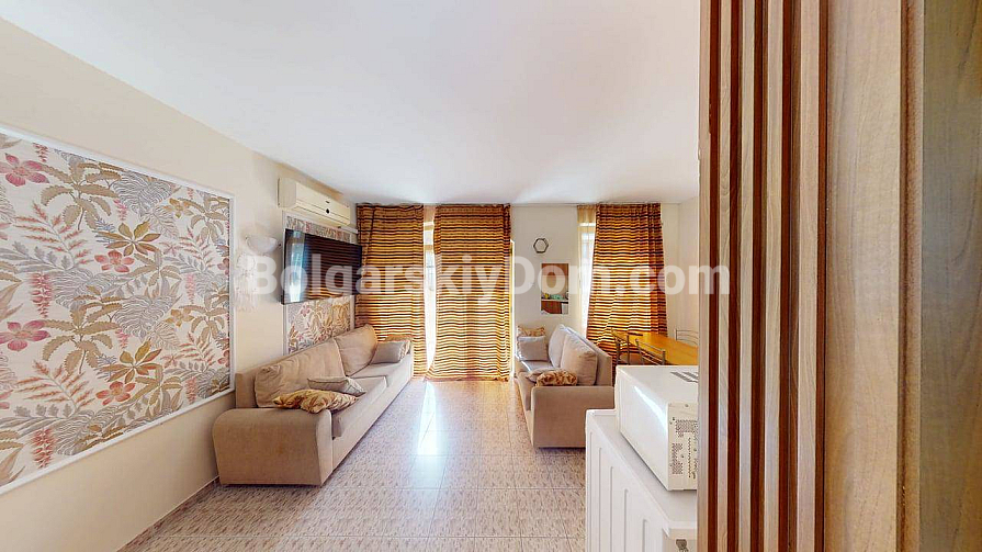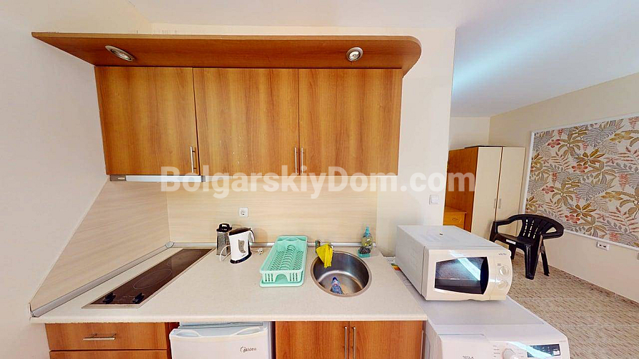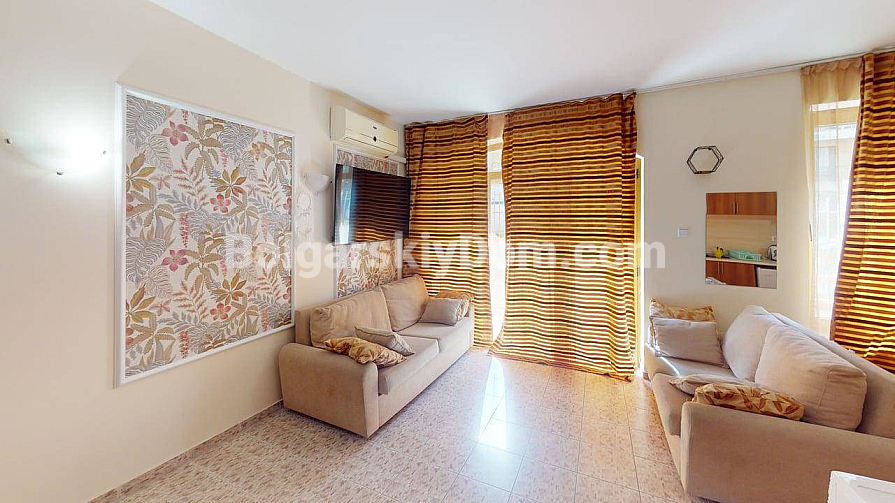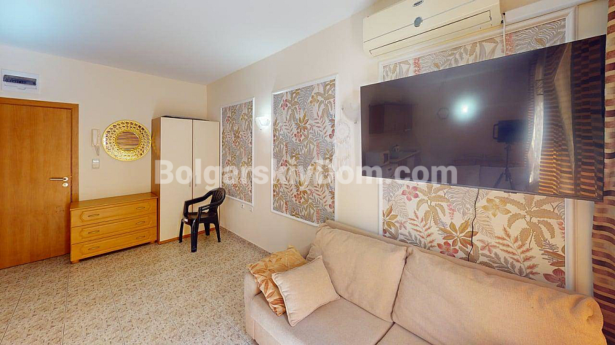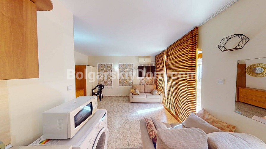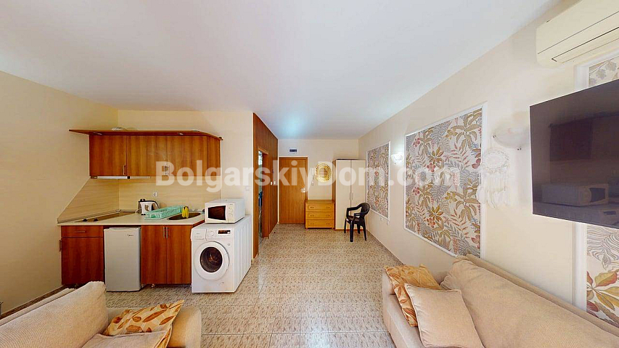 Саме серце сонячного курорту Сонячний Берег. Апартамент розташований у комплексі Royal Dreams всього за 300 метрів від моря та піщаного пляжу. Площа становить 34 кв.м з дуже практичним плануванням: простора світла кімната для відпочинку та сну, компактна кухонна зона та сучасна ванна кімната. Вікна виходять строго на південь, перший поверх із прямим виходом у внутрішній дворик. Квартира після свіжого ремонту, повністю мебльована новими стильними меблями та оснащена всією необхідною технікою — можна заїжджати вже сьогодні та насолоджуватися життям біля моря.