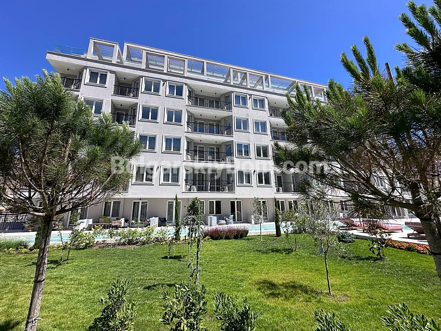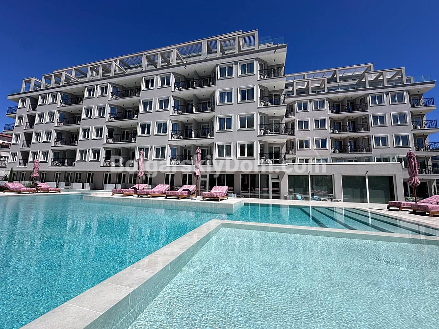 Преміальний морський варіант від Болгарський Дім! Стильна двокімнатна квартира в новому комплексі J’Adore Secret Garden у південній частині Сонячного Берега, район Cacao Beach. Об’єкт розташований на 4-му поверсі семиповерхового будинку з ліфтом, введеного в експлуатацію у 2025 році (отримано Акт 16). Площа 61,55 кв.м (житлова 51,14 кв.м) із сучасним плануванням: простора вітальня з інтегрованою кухонною зоною, окрема спальня, повністю обладнаний санвузол (ванна/душ, раковина, унітаз), балкон/тераса з видом на басейн комплексу. Південна орієнтація. Квартира під ключ, є все необхідне для життя!