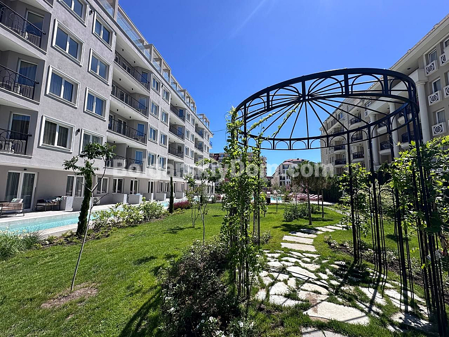 Комплекс J’Adore Secret Garden натхненний Французькою Рив’єрою: закрита доглянута територія з відкритим басейном і зоною відпочинку, лобі-бар, фітнес-центр, масажний кабінет, дитячий майданчик, зелені зони, пішохідні доріжки, ресторан/кафе, мінімаркет, паркінг, цілодобова охорона, відеоспостереження та управління орендою. Відстань до широкого піщаного пляжу — 300–800 метрів. У пішій доступності популярні місця, як Bedrum Beach і Zazu, супермаркети, ресторани, аптеки, зупинки транспорту — вся інфраструктура курорту поруч, при цьому район тихий і престижний. Річна такса підтримки — 18 євро за кв.м (все включено: басейн, охорона, прибирання, обслуговування).