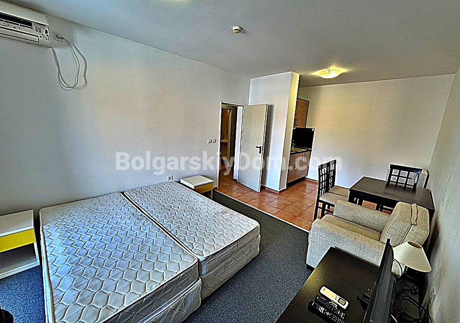 Затишна та вигідна пропозиція від Bolgarskiy Dom! Простора студія на першій береговій лінії у комплексі Marina Cape в Ахелої. Об’єкт розташований на 3-му поверсі п’ятиповерхового цегляного будинку 2010 року з ліфтом. Площа — 45 кв.м.: передпокій, велика кімната (кухонний куточок + зона відпочинку/спальні), санвузол із душем, тераса з видом на море. Студія мебльована та оснащена технікою — світла, готова до використання для відпочинку або подобової оренди в сезон.