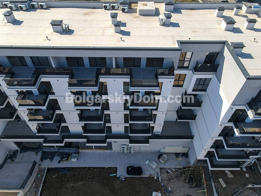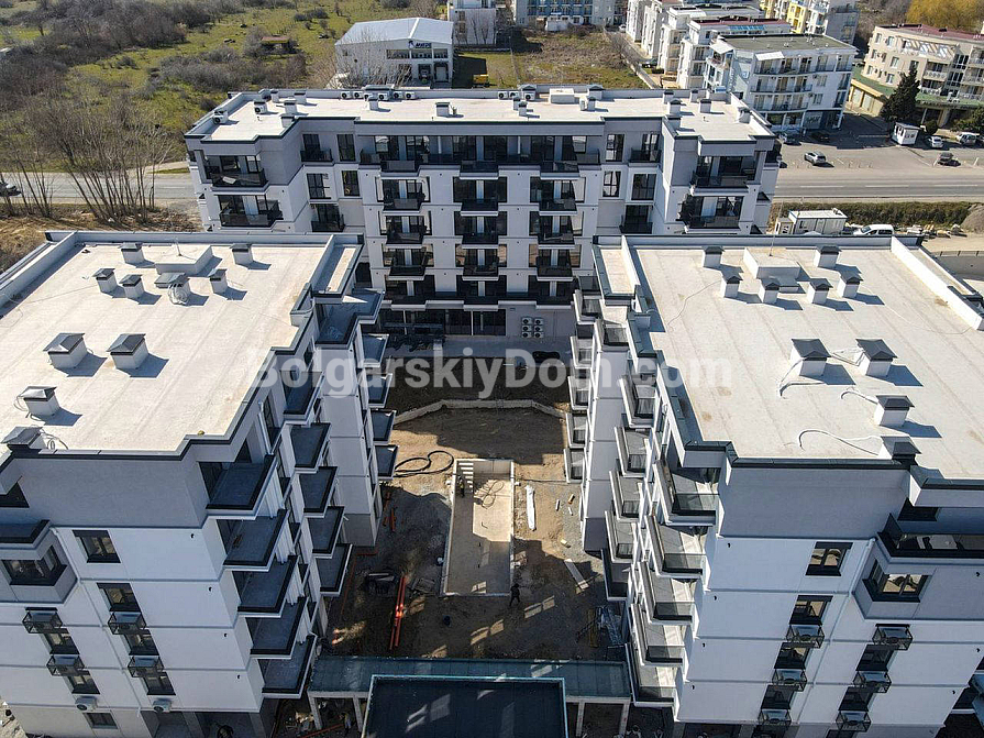 Комплекс Emilia Romana Este — сучасний і доглянутий, із відкритим басейном, зоною відпочинку, парковкою та цілодобовою охороною. Район спокійний, але добре розвинений: приблизно 1 км до центру Сонячного Берега та піщаного пляжу (10–15 хвилин пішки або близько 5 хвилин автобусом). Поруч супермаркети, кафе, аптеки, ринок — усе необхідне для комфортного відпочинку або проживання. Річна такса підтримки — 16 євро за кв.м. (включає басейн, прибирання території та охорону).
