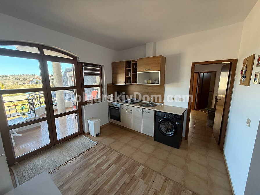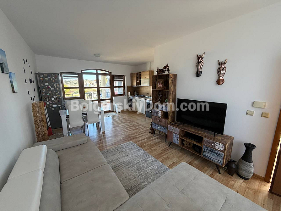 Поповнення каталогу від агентства Bolgarskiy Dom! Просторий апартамент з двома спальнями та панорамним видом на гори у комплексі Nessebar View у селі Кошариця. Квартира площею 96 кв.м. розташована на 2-му поверсі (верхній у двоповерховій секції) цегляного будинку 2008 року побудови. Планування включає передпокій із кухонним боксом, коридор, дві окремі спальні, санвузол із душем та туалетом, а також терасу з видом на гори. Повністю мебльована та готова до заселення або здачі в оренду як інвестиційний об’єкт.