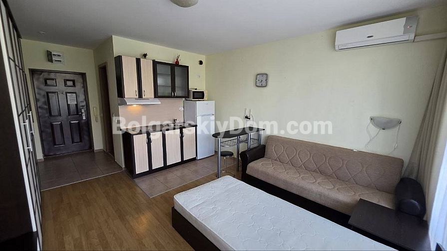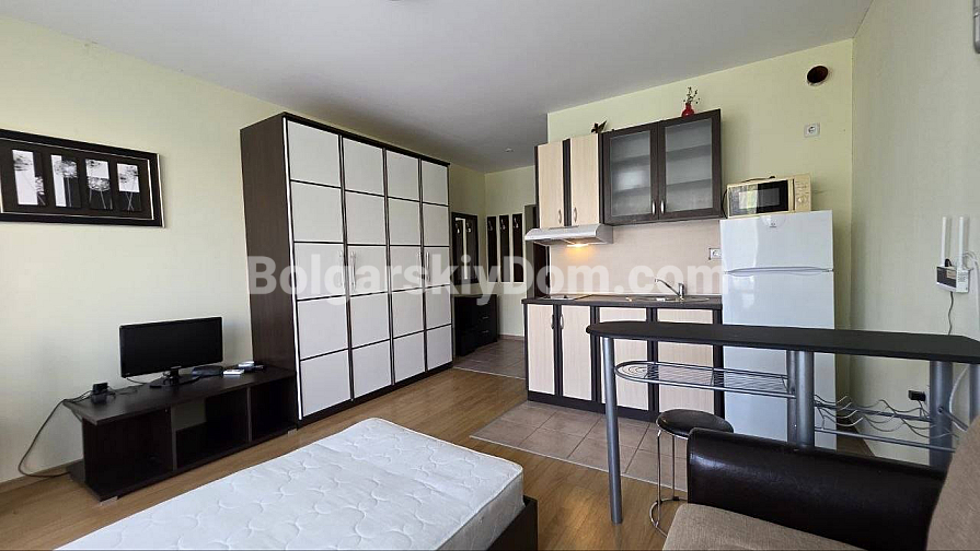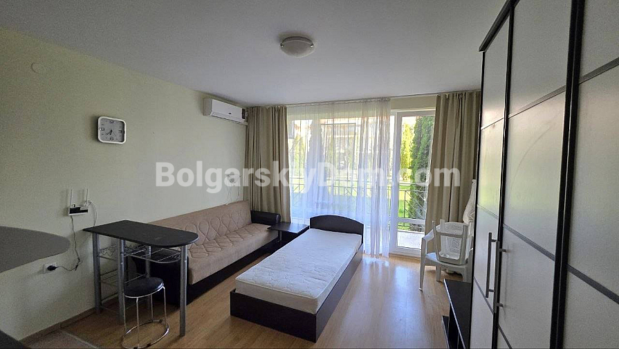 Свіжий лот від Bolgarskiy Dom! Затишна та повністю мебльована студія в комплексі Орхідея Форт Гарден на західній стороні Сонячного Берега. Площа 39 кв.м., одне з найзручніших розташувань на 1 поверсі. Квартира світла та практична: окрема кухонна зона з технікою, комфортна зона відпочинку, санвузол та балкон з видом на зелену територію комплексу. У подарунок від власників залишаються якісні меблі, необхідна техніка, посуд та текстиль. Приїжджаєте з валізою і відразу починаєте жити, не витрачаючи час і гроші на облаштування. Ідеально підходить як для особистого відпочинку, так і для подобової/довгострокової оренди — все готове до того, щоб приносити дохід уже в цьому сезоні.