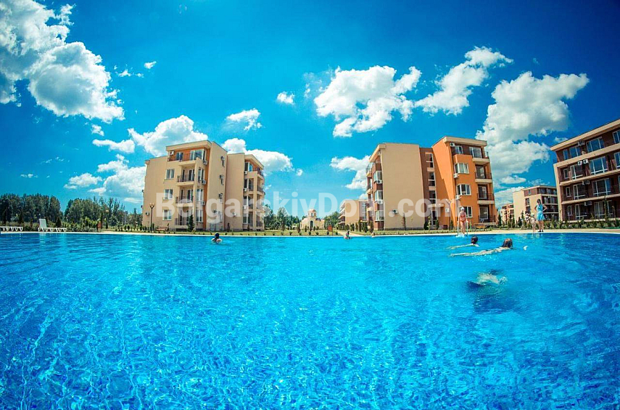 Орхідея Форт Гарден — великий закритий комплекс із кількома відкритими басейнами, зонами відпочинку, ресторанами, баром, магазином, дитячими та спортивними майданчиками, багатим озелененням, охороною та контролем доступу. Розташований у спокійній частині курорту, всього за 800–900 метрів від пляжу. Поруч аквапарк, супермаркет ММ, медичний центр та вся необхідна інфраструктура. Є Акт 16, такса обслуговування 14 євро за кв.м на рік. Напишіть агенту АН Bolgarskiy Dom, він надішле актуальні фото та відео, організує перегляд у зручний для вас час!