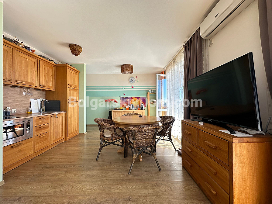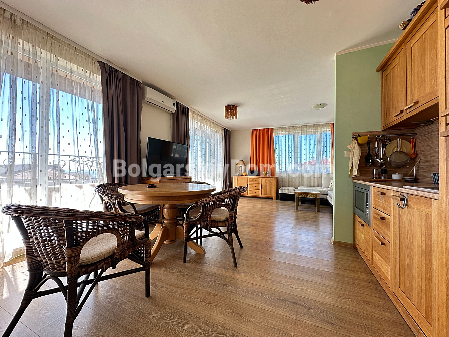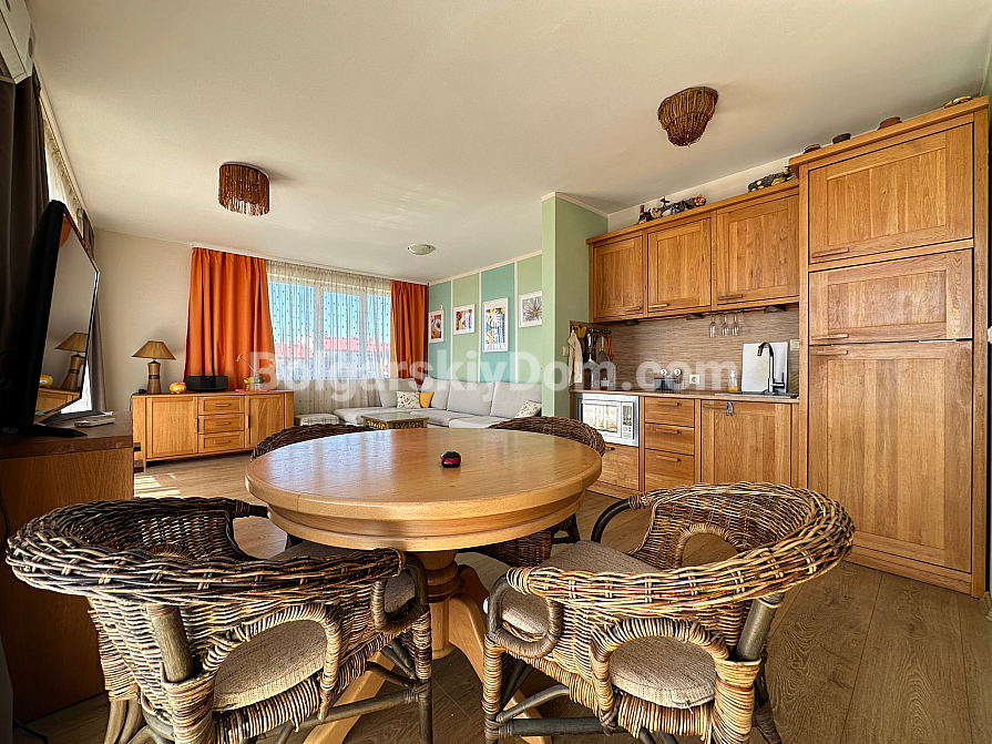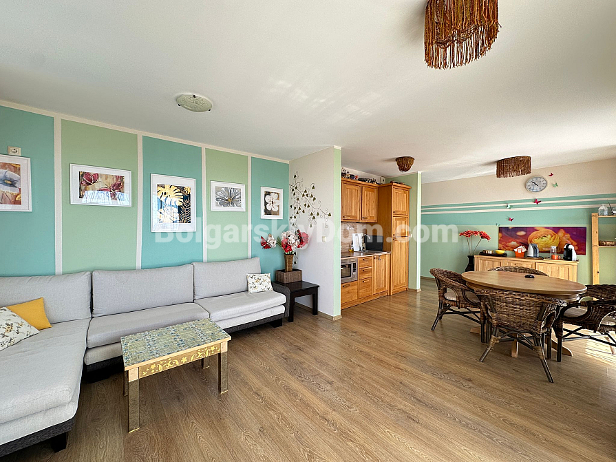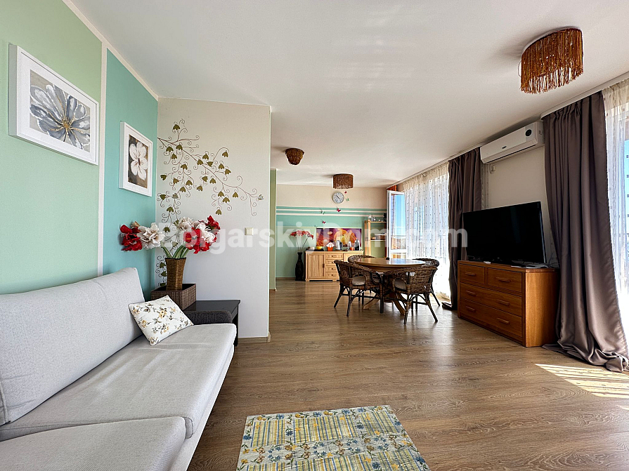Болгарський Дім в особі команди агентів пропонує вам чудовий апартамент у третій фазі ЖК Лайфстайл, на морському курорті Равда. У продажу - квартира з видом на море: двокімнатна, стильно облаштована і дуже простора. Зручний другий поверх, квадратура дорівнює 96 кв. м. Стильний інтер'єр, що перегукується у всіх кімнатах, входить у ціну.